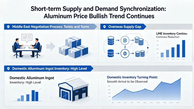 Overall, the Middle East negotiation process has been full of twists and turns, but the overseas supply gap and the continuous reduction of LME inventories have supported the relatively strong operation of the external market prices. Domestic aluminum ingot inventories remain at a high level, and it is necessary to pay attention to whether the domestic inventory turning point can come smoothly.